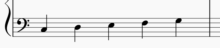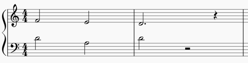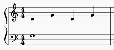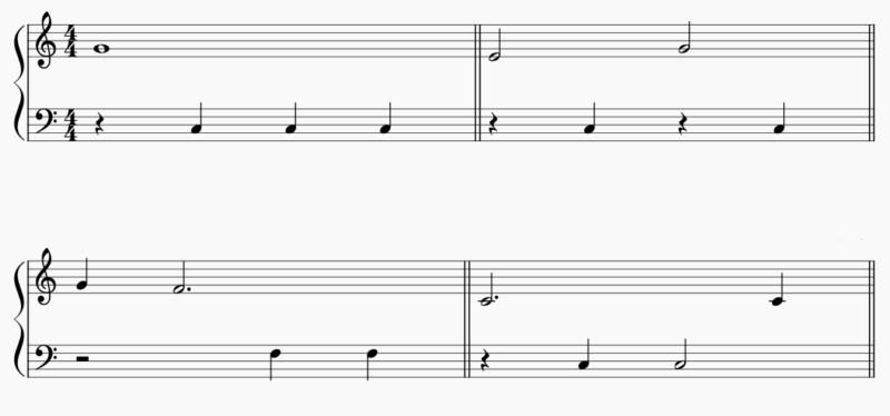 そして、ずっと同じ音で1小節伸ばす形や、4分音符と2分音符のリズムが出てくるなどし、1曲の中で2つの音、3つの音と動くようになります。