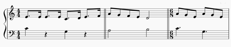 4分音符と休符の形もあれば、2分音符2つで1小節(6/8拍子の場合付点4分音符2つで1小節)になっているものもあります。