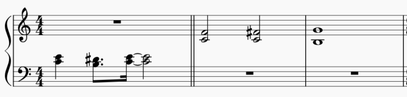 - 1小節伸ばす形(音3つ)+メロディーで音を伸ばす部分で4分音符を弾く際音が変わる(2音)