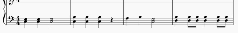 ⇩4/4拍子の曲で、例としてはこのような感じです。
