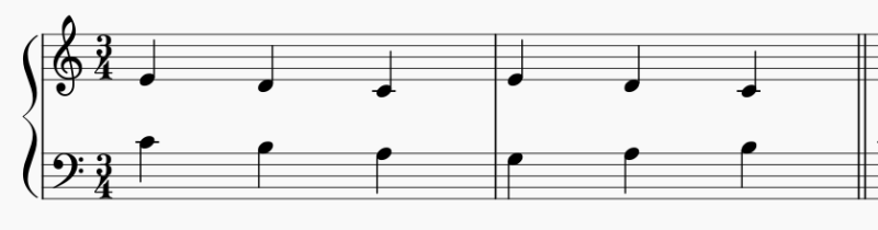 はじめは、隣り合った音で動いたり同じ形の動きが続いたりしています。